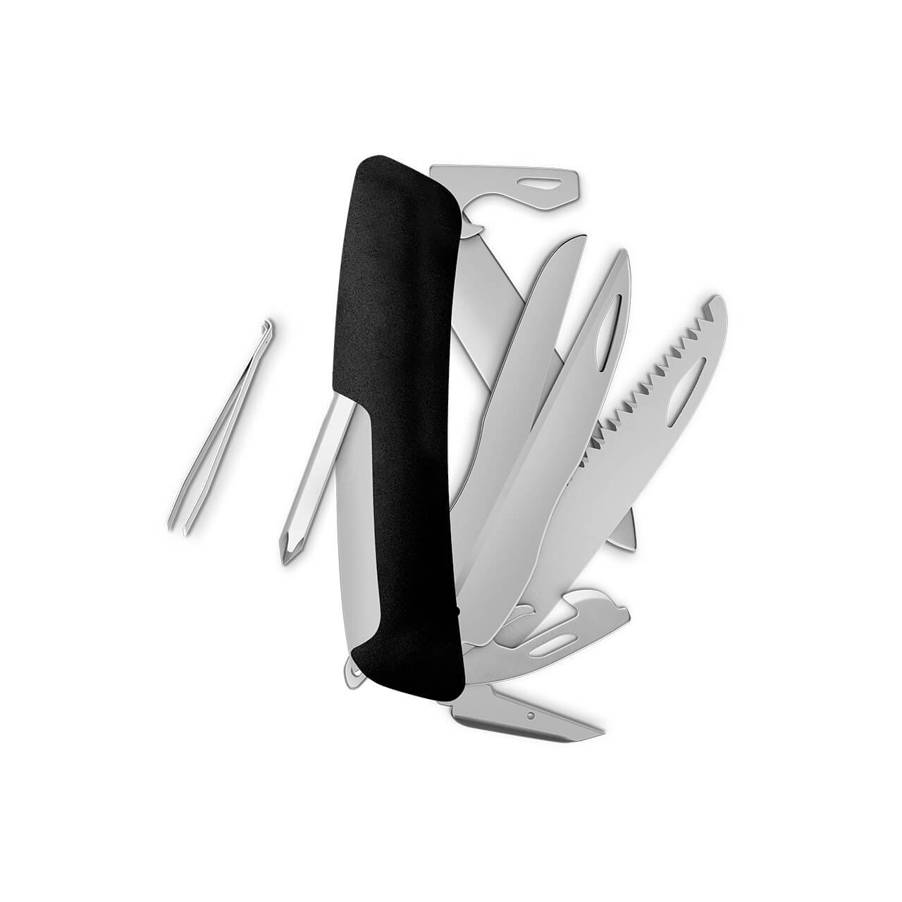 Elaboradas con los más altos estándares de calidad, está hecha con acero inoxidable extrafuerte (440/57 HRc), lo cual ofrece una alta resistencia al desgaste. Su hoja mate le da un acabado que combina de manera elegante con su cacha hecha de bio-plástico. La línea STANDARD D10 R tiene la peculiaridad de tener entre sus funciones unas tijeras de 75 mm y una sierra para madera de 77 mm con 31 dientes, lo cual la hace una de nuestras navajas más completas. Esta navaja será tu compañera confiable en cualquier tarea outdoor. SWIZA® te sumerge en un mundo que une tradición e innovación. Con sede en Jura, nos apasiona desarrollar cuchillos multiusos que combinen precisión y alta calidad con un diseño moderno y contemporáneo.