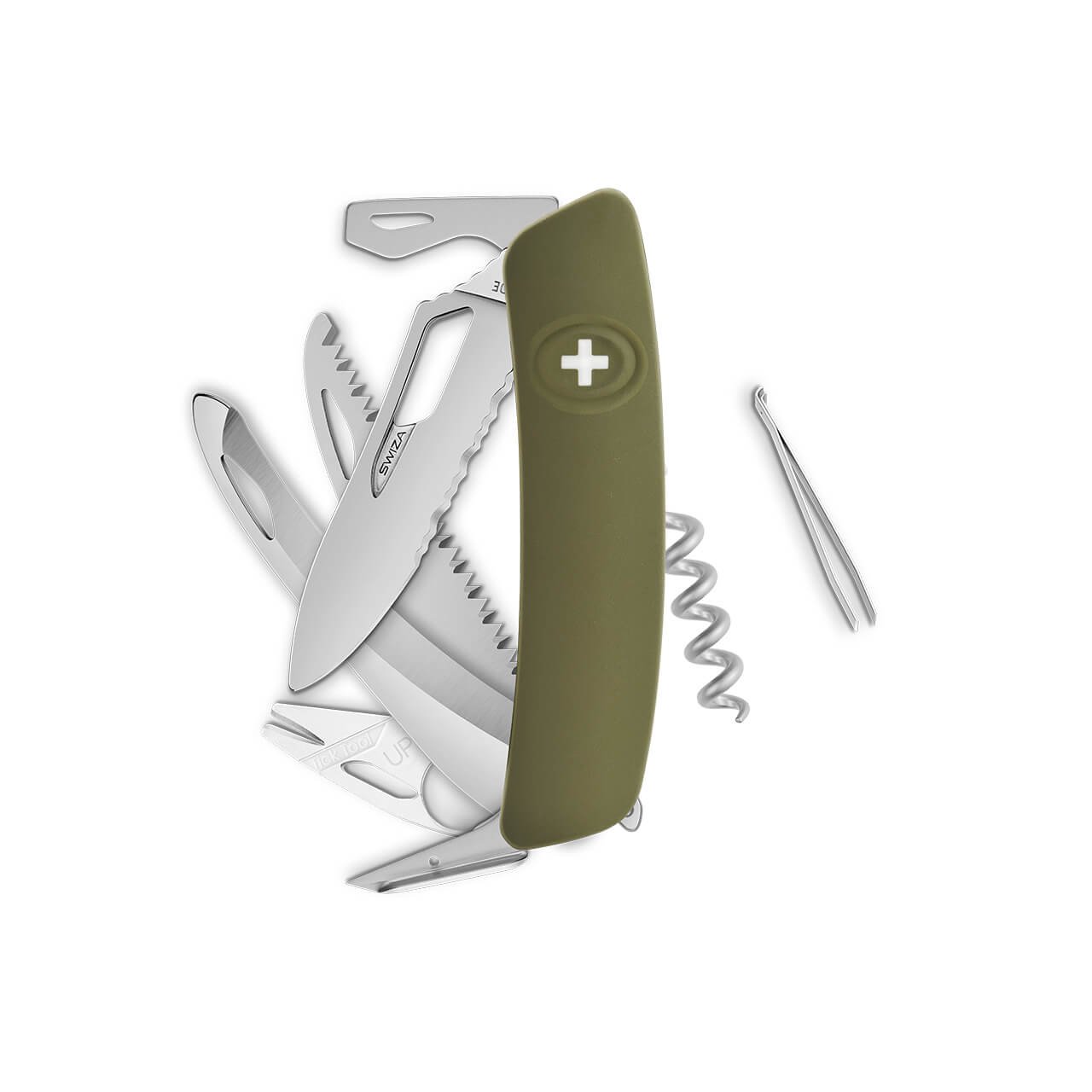 Navaja suiza diseñada especialmente para ser manipulada de manera fácil con una sola mano. Toda la línea "SINGLE HAND" cuenta con ese tipo de hoja que ha sido pensada para manipularla ya sea sólo con la mano derecha o izquierda, de ahí el nombre de Single Hand o "Una sola mano" en español. Su acero es de muy alta calidad (440/57 HRc), además cuenta con un acabado mate. Tanto el material como su diseño han sido cuidadosamente estudiados y elegidos para ofrecer al usuario final el mejor agarre; además, cuenta con una herramienta patentada que es el tick tool el cual muestra cómo SWIZA une tradición e innovación.